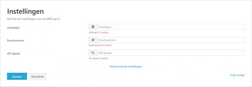 Je dient te beschikken over een actuele MKG-omgeving. Als deze omgeving geen cloudomgeving betreft en er nog geen API draait, zul je allereerst voor een werkende API moeten zorgen. De installatie ervan gebeurt doorgaans in overleg met de systeembeheerder en/of een externe IT-partij. Bekijk ook het artikel Hoe importeer je een SSL-certificaat?