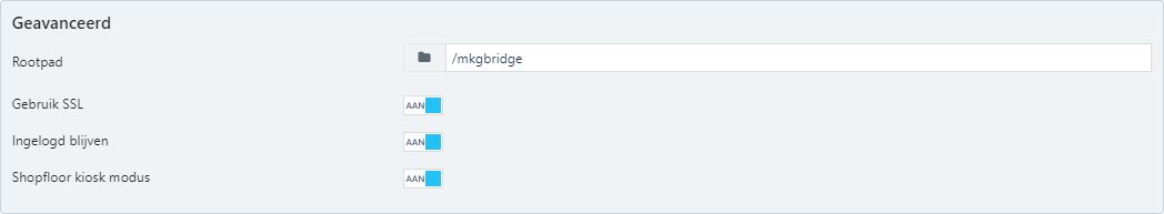 - Rootpad: dit veld is automatisch gevuld met "/mkgbridge"